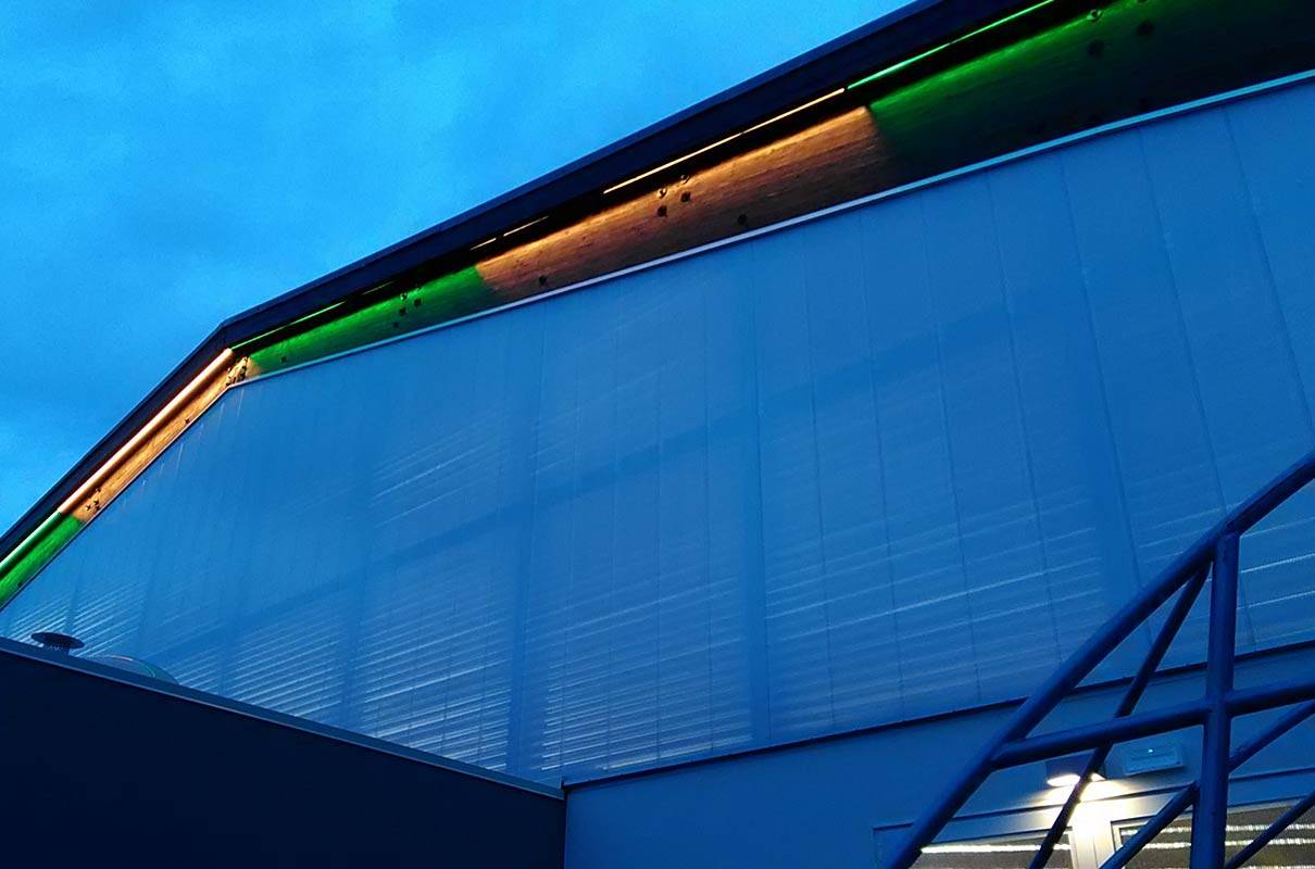 Realizzazione degli impianti elettrici, impianti speciali; telecontrollo e supervisione dei consumi. Realizzazione di illuminazione ad alta efficienza dimmerabile con sistema di gestione a distanza e di un impianto fotovoltaico da 20 kW.